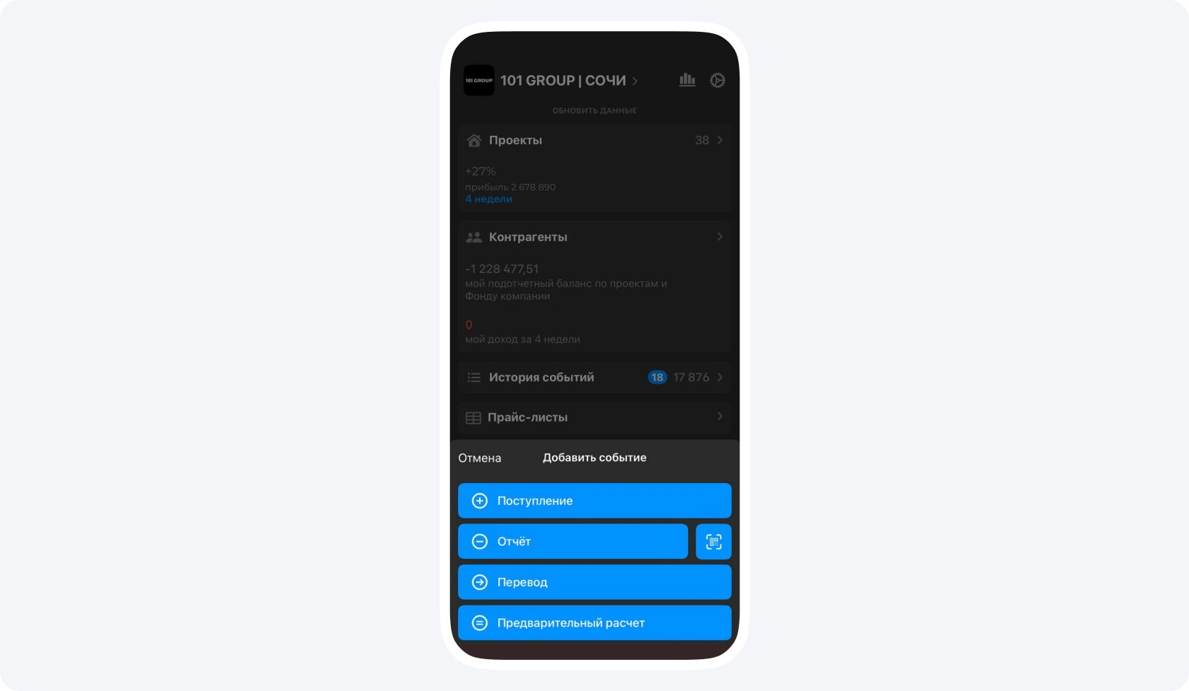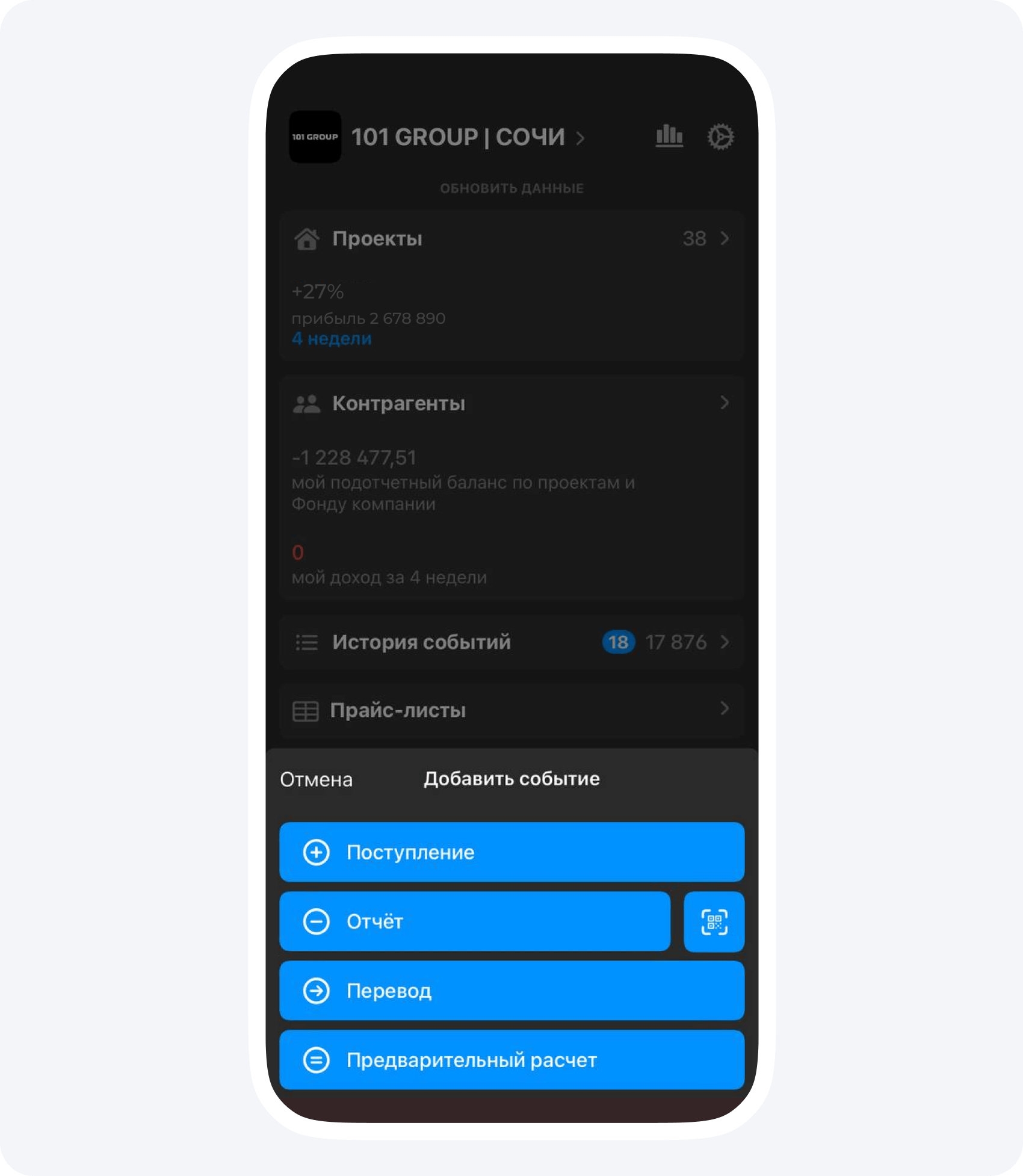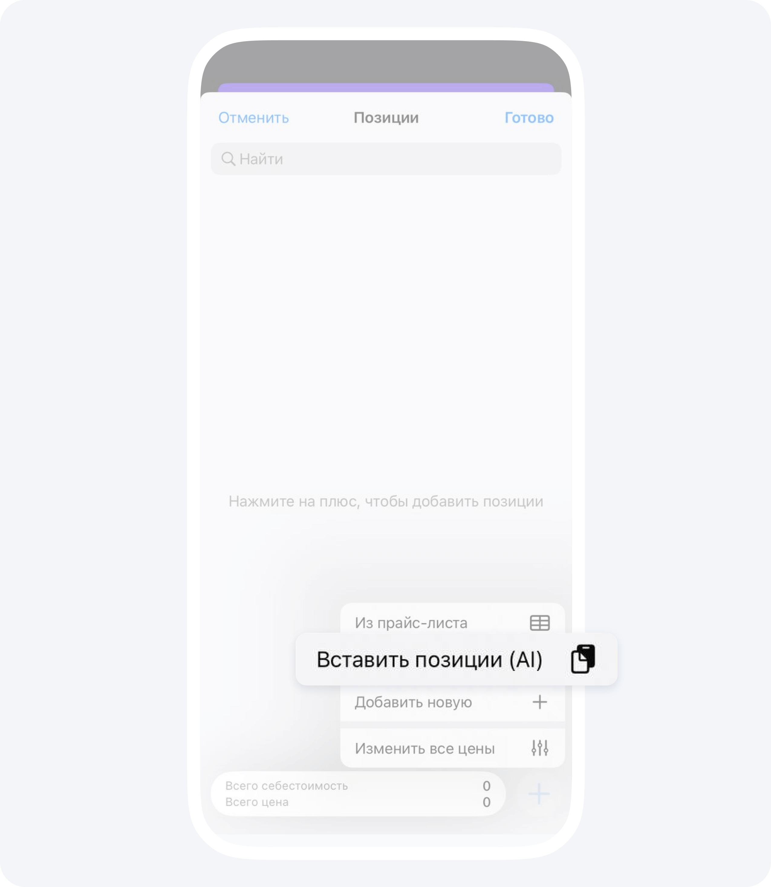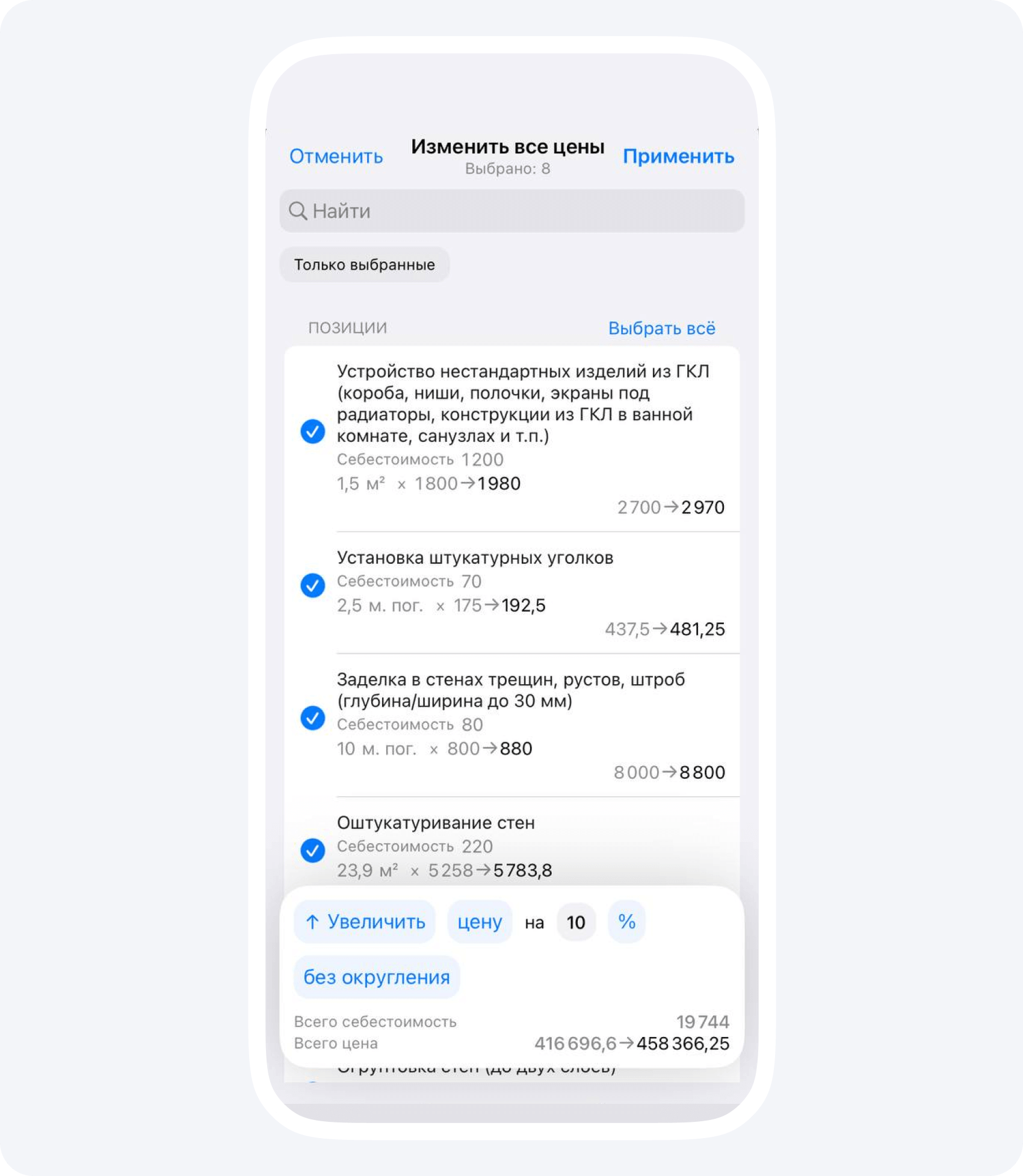 Мобильность. Прямо со смартфона вы можете редактировать позиции, менять стоимость и перемещать позиции внутри расчета.