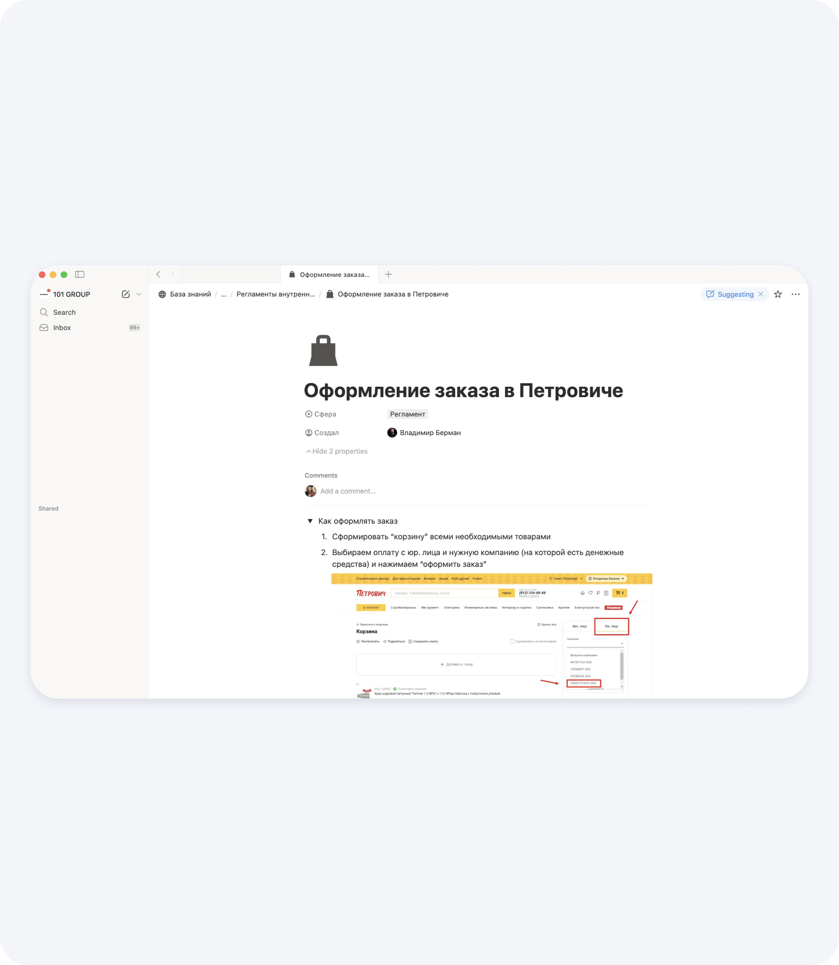 - Храните все регламенты в одном месте. В идеале, это могут быть файлы в Notion или любое облачное хранилище. Ссылку на тот или иной регламент можно будет быстро прикрепить к позициям прайс-листа, чтобы новые сотрудники могли быстро к нему обратиться.