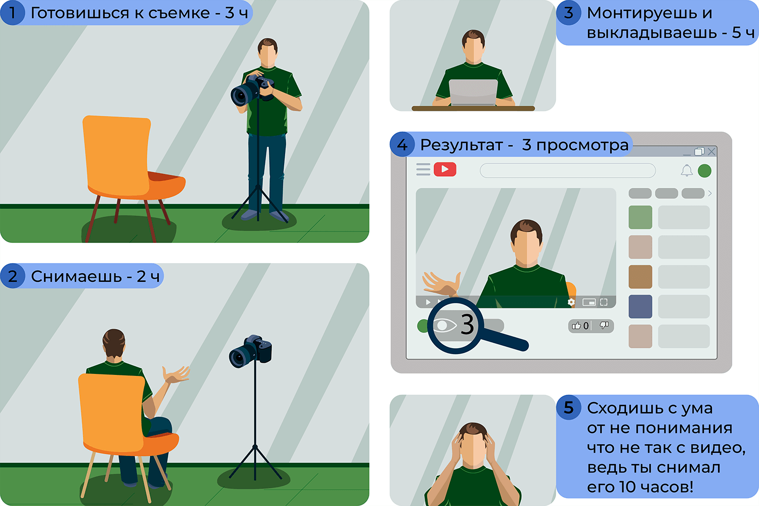 Все начинается с согласованного контент-плана, в который входят как заранее подготовленные публикации, так и ситуативный контент. Сюда входят посты, короткие видео для reels или shorts, stories, лонгриды для сайта или Telegram, рассылки, сценарии для видео и прочее-прочее. В месяц выходит трехзначное число единиц контента, если у вас несколько соцсетей с постингом 2-3 раза в неделю.