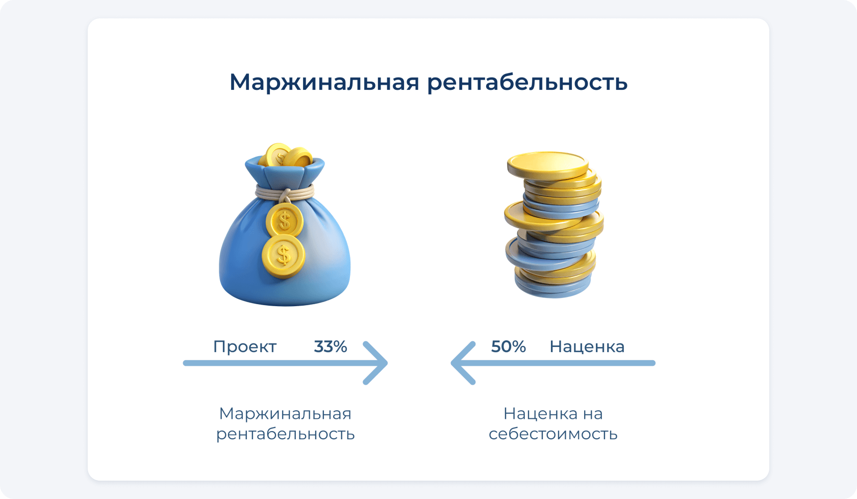 Маржинальная прибыль — это абсолютная сумма, которая остаётся после вычета переменных затрат по проекту.