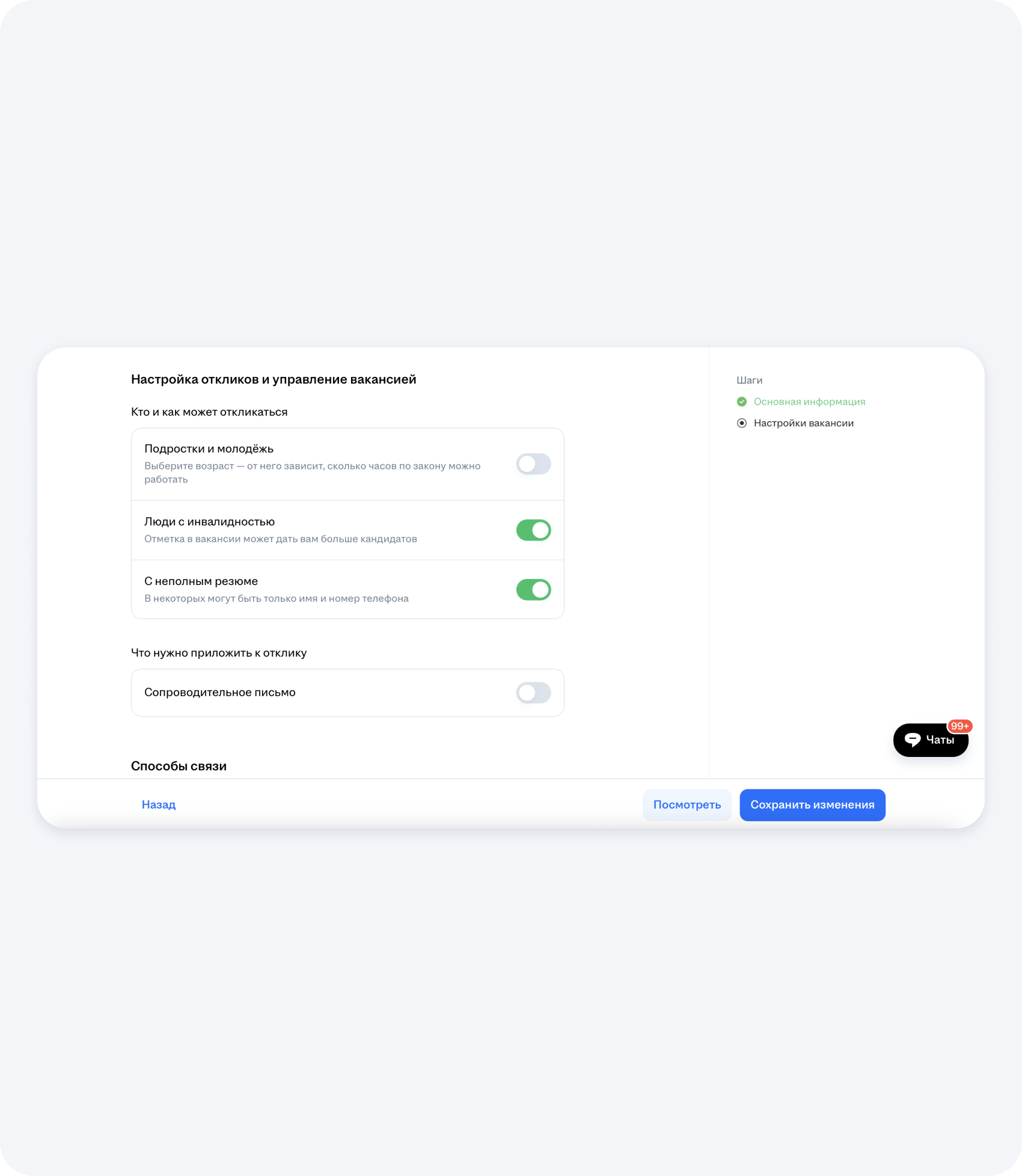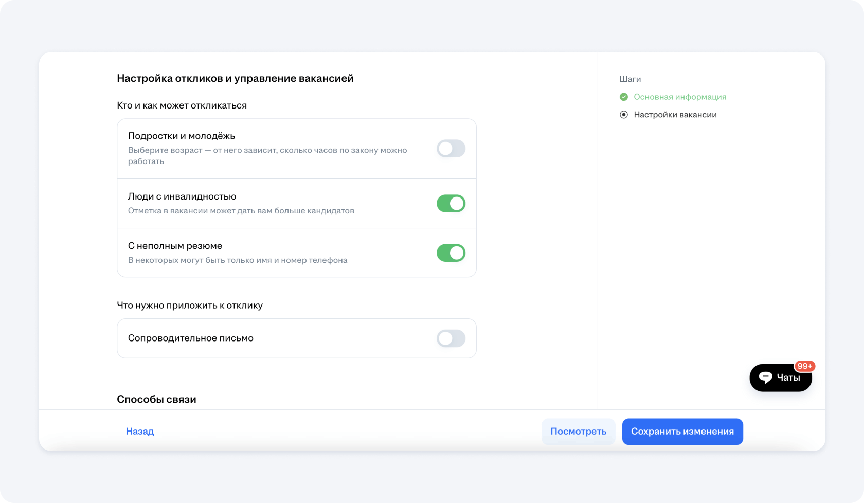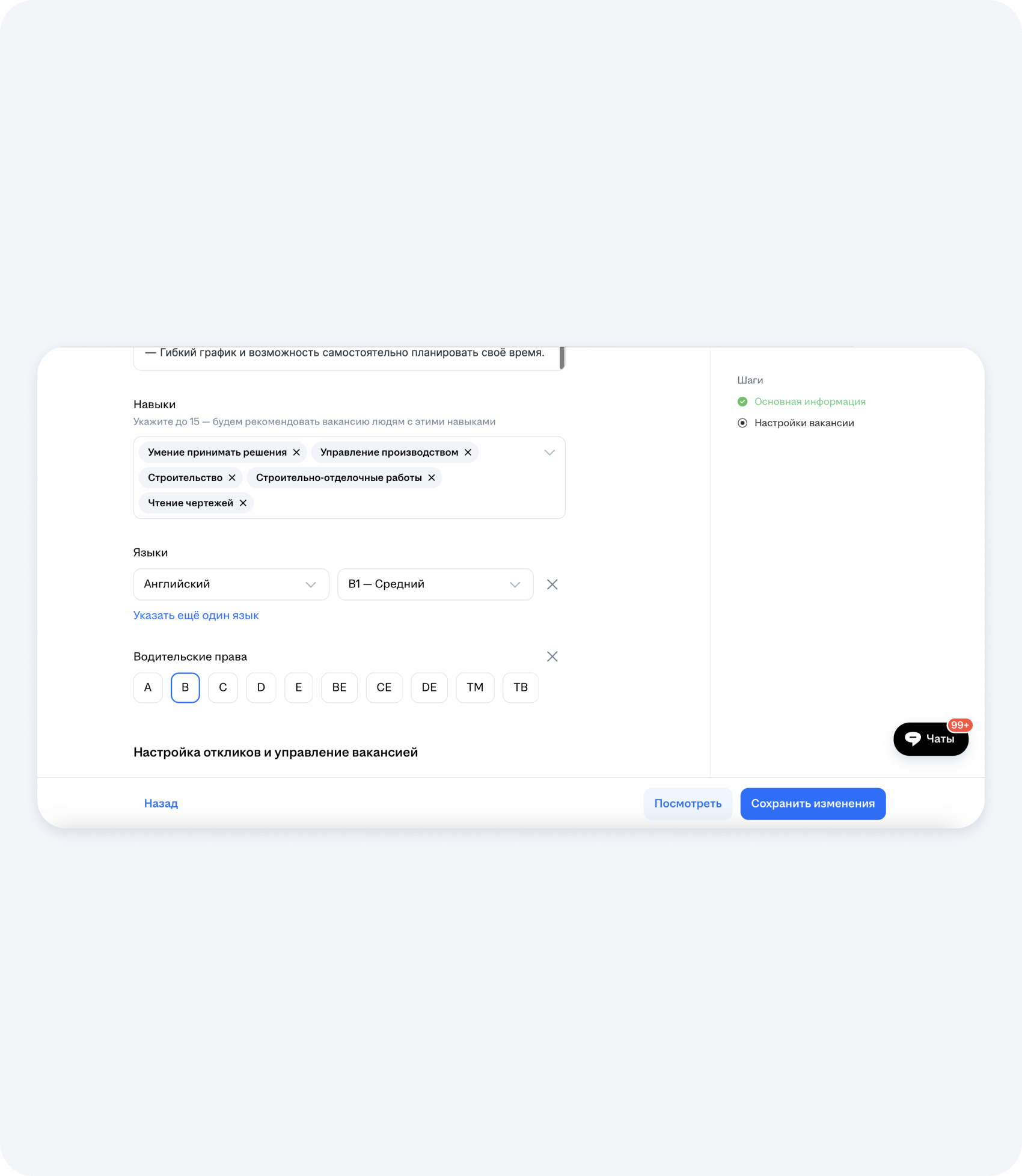 9. Настройка откликов и управление вакансией прораба