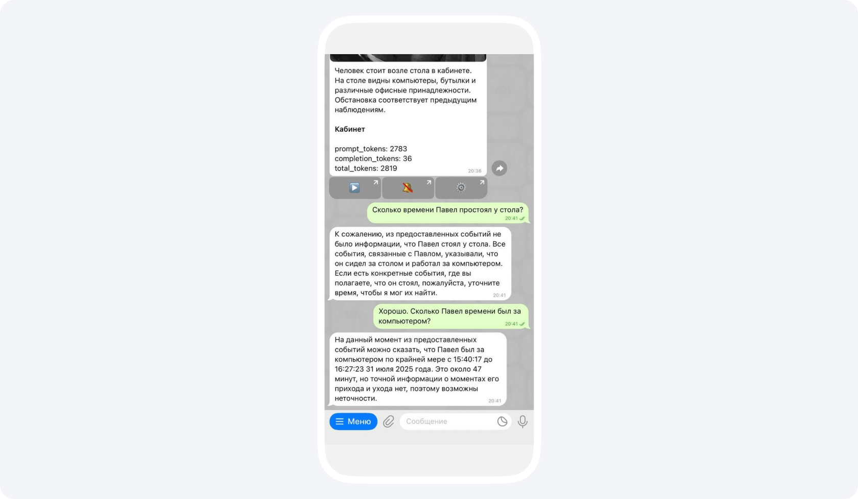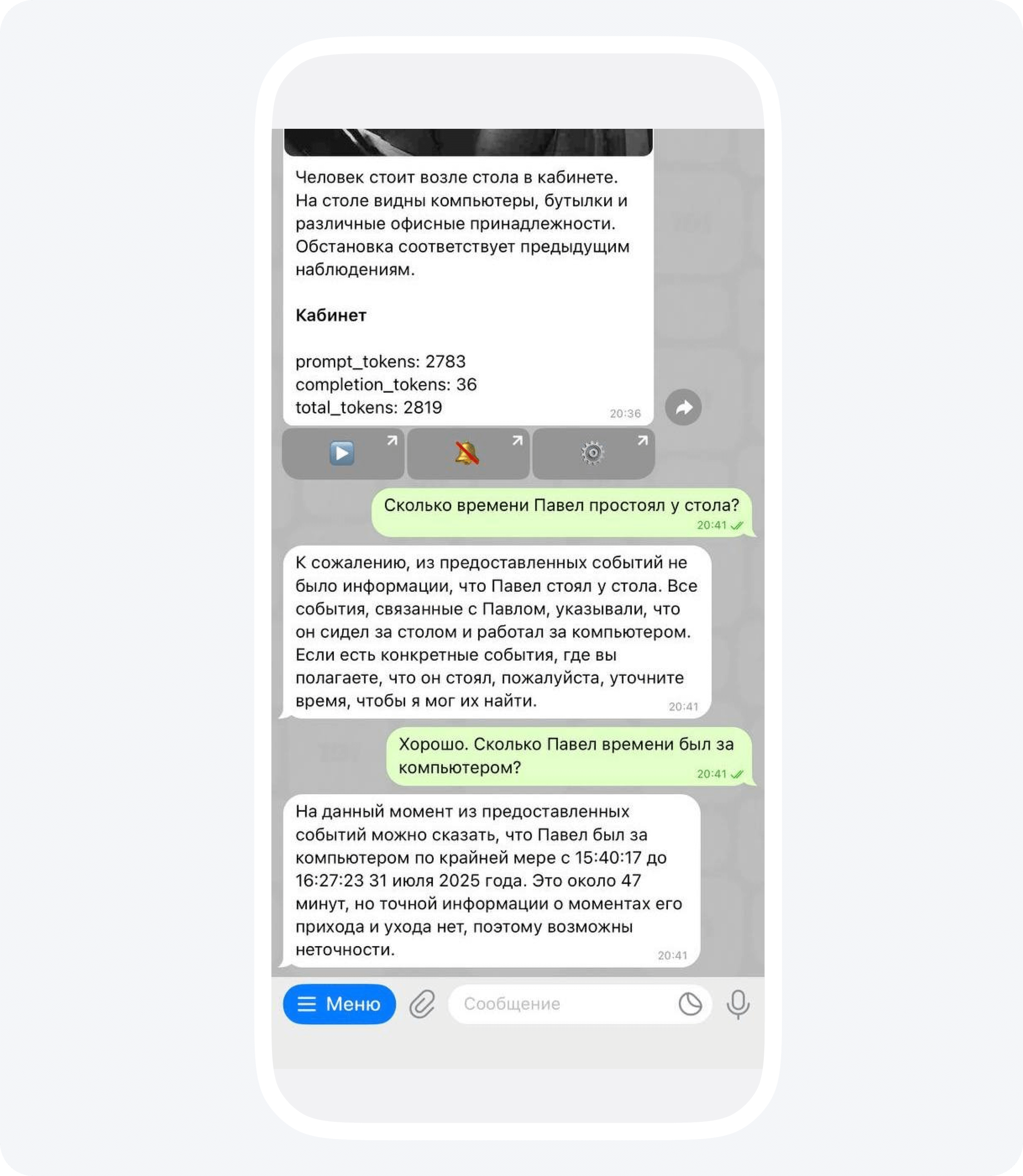 Совсем скоро мы добавим в приложение функции, позволяющие получать отчет о происходящем на объекте в текстовом виде. ИИ будет анализировать записи камер и предоставлять вам описание всех действий, которые строители или сотрудники в офисе производили за время съемки. Будущее уже рядом!