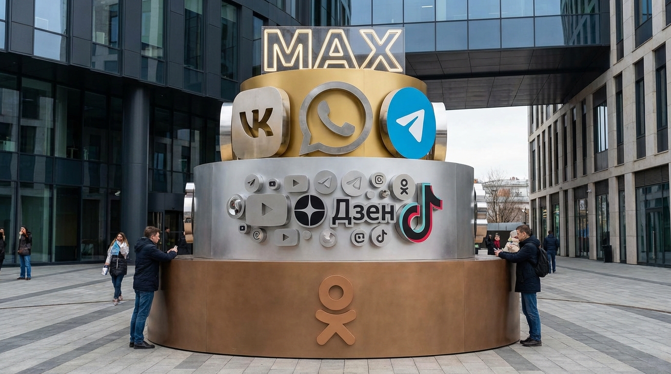 В 2026 рынок в России выглядит так: три универсальных «входа в день» — ВКонтакте, WhatsApp, Telegram. По охвату они стоят рядом, дальше идёт MAX с заметным разрывом, затем группа медиаплатформ, которые конкурируют за свободное время: YouTube, Дзен, TikTok, OK.