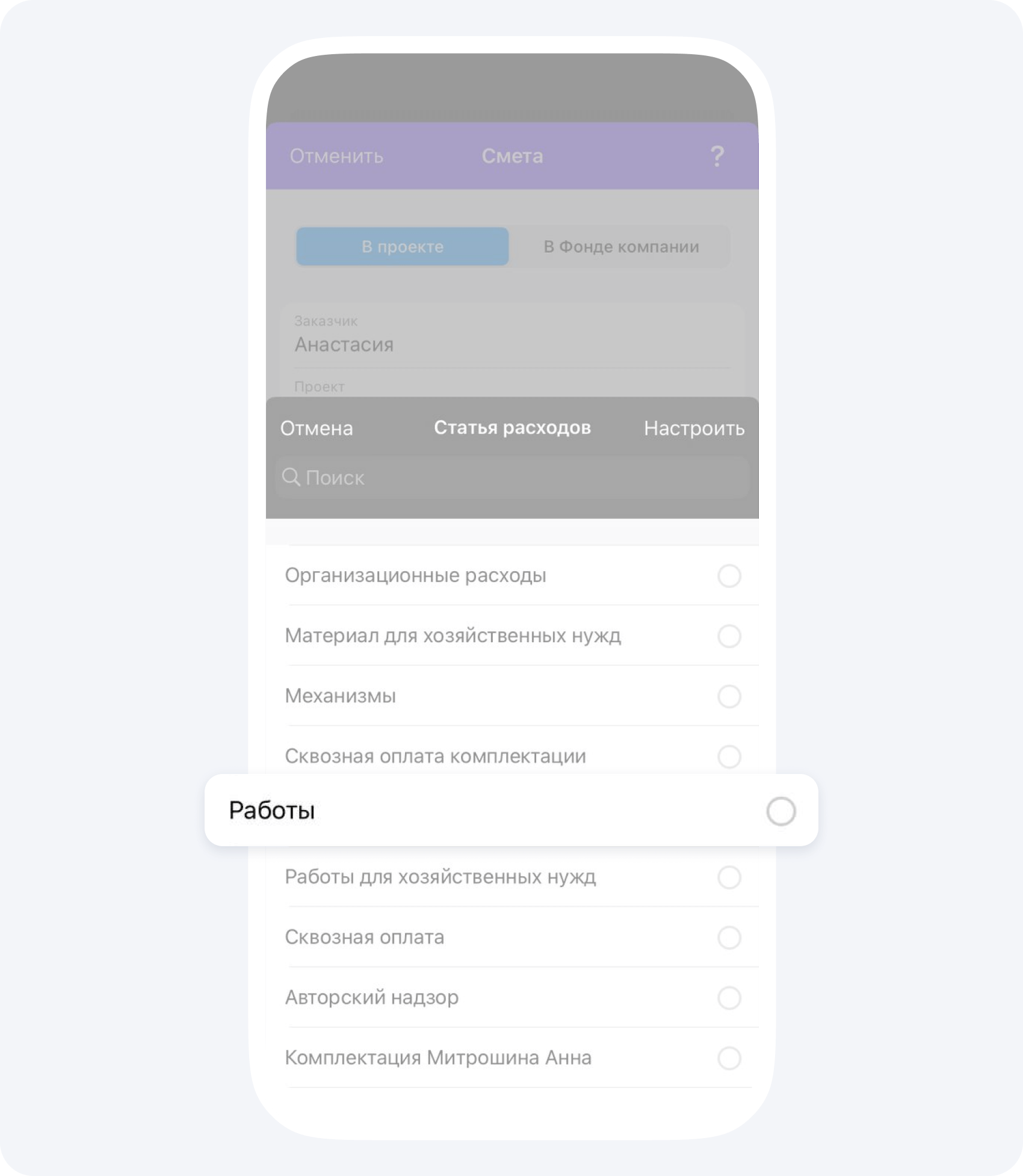 - отметьте нужную статью расходов, это могут быть «Работы».