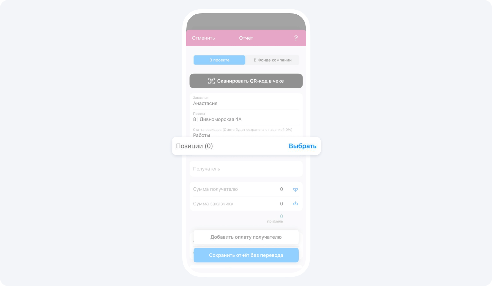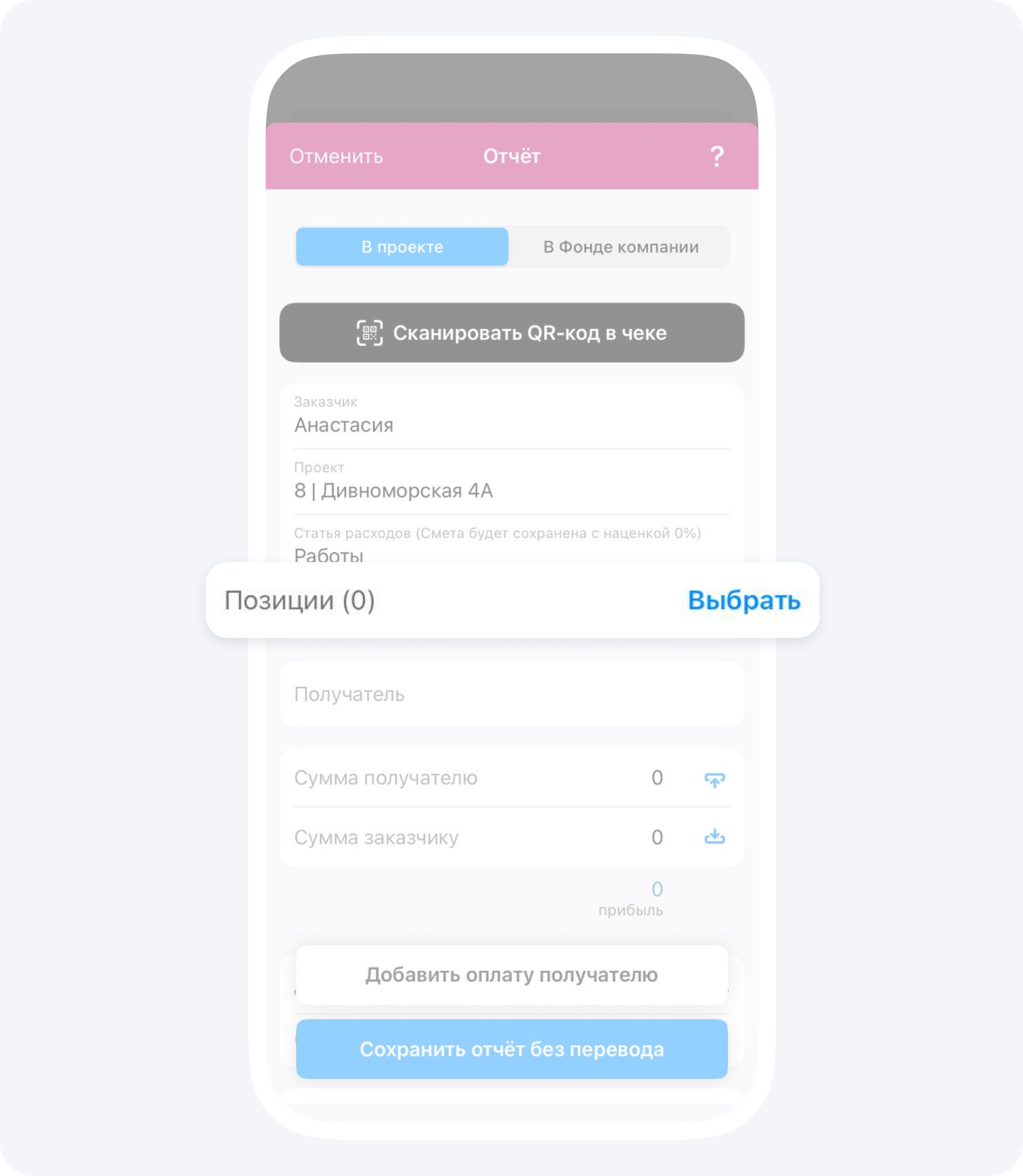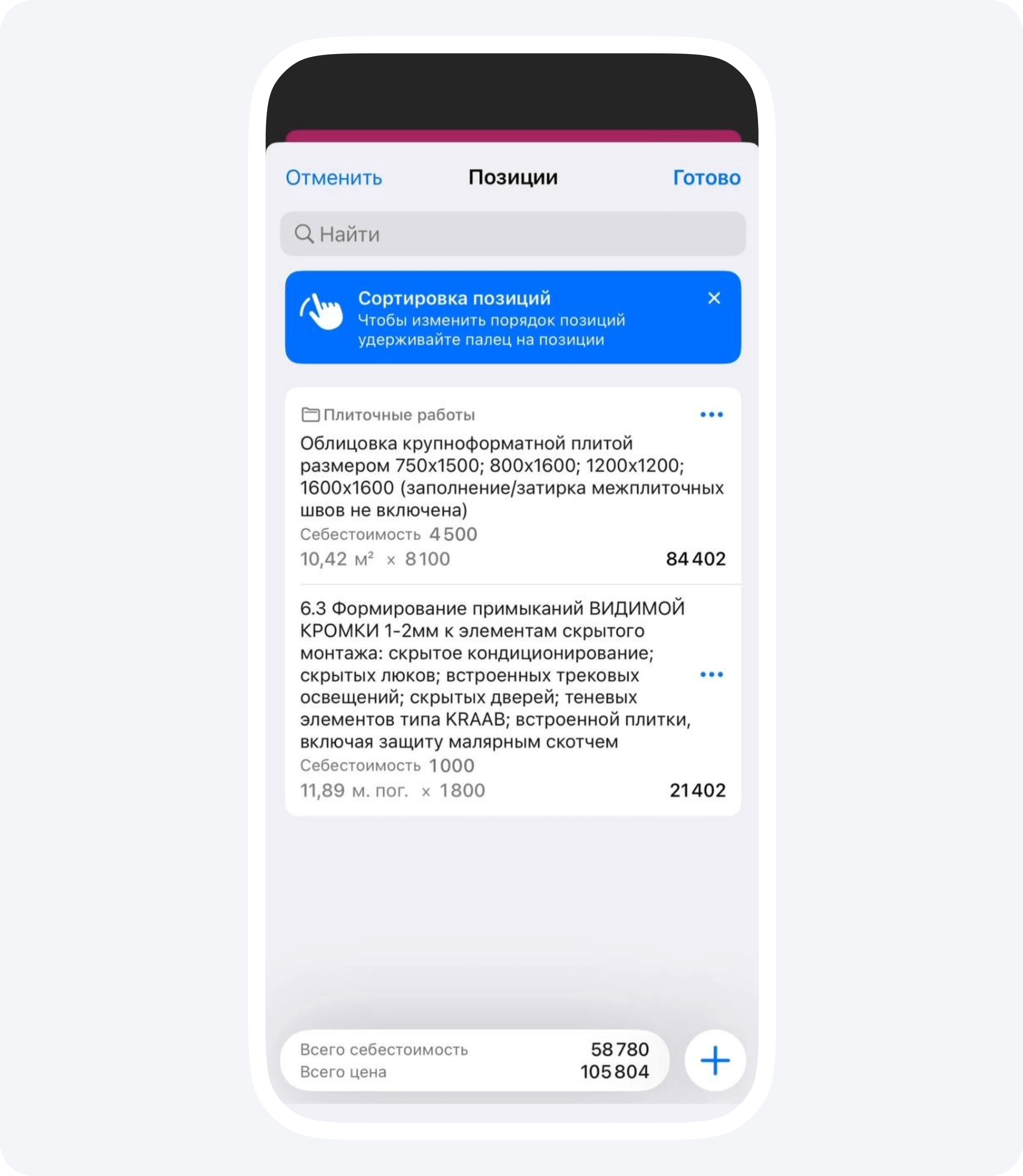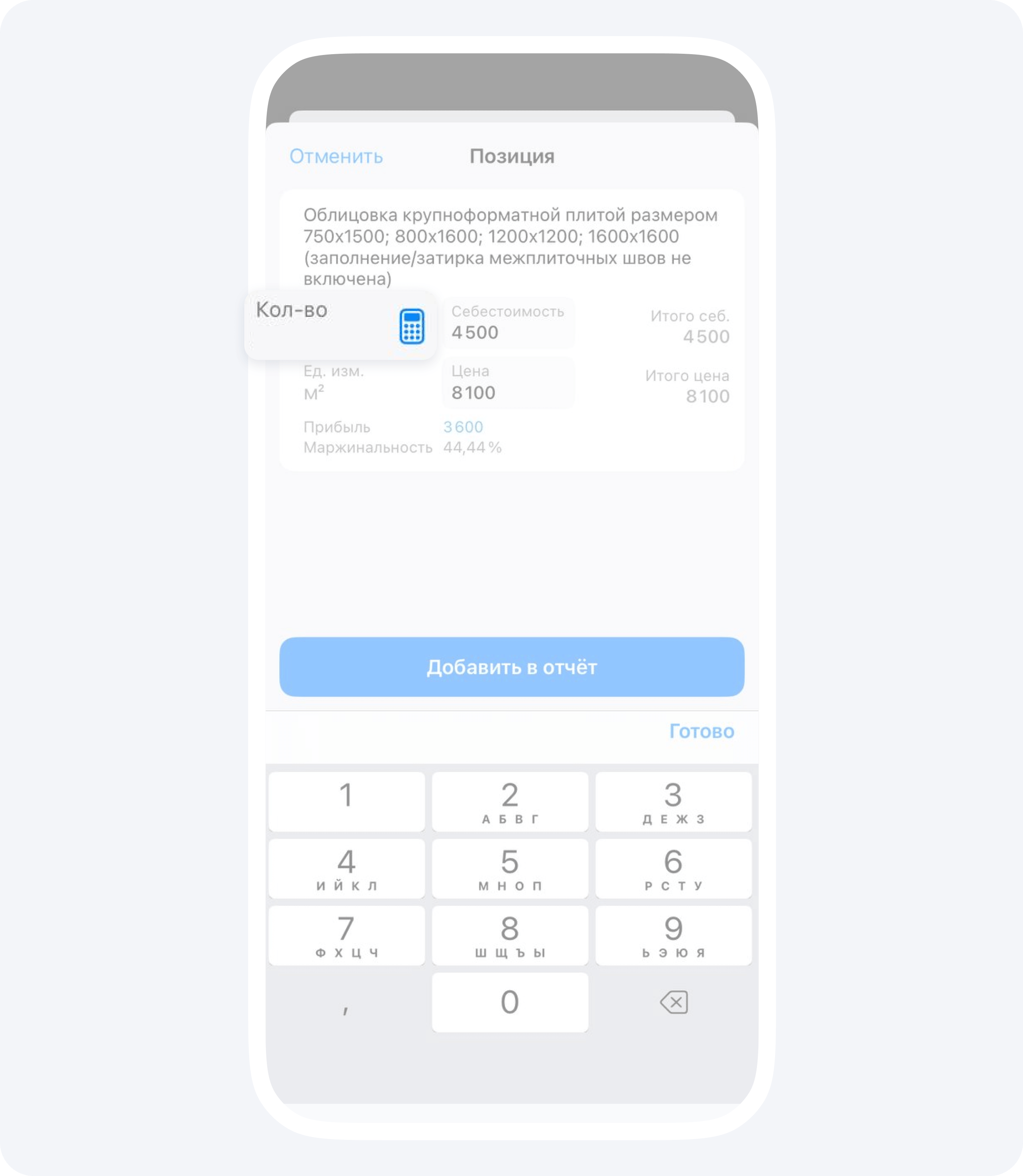 2. Выберите позицию, для которой вам требуется сделать замеры прямо на объекте.